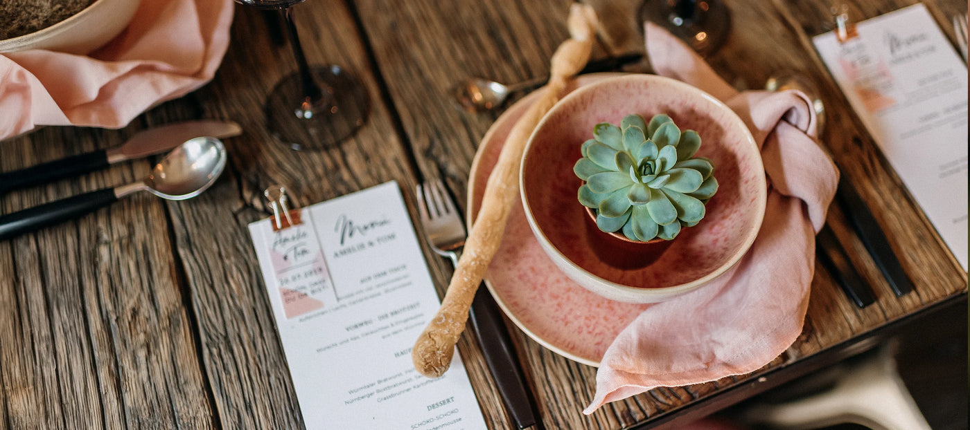 Statt vergänglicher Kleinigkeiten: Sukkulenten wachsen mit – und erinnern deine Gäste auch nach der Feier an einen besonderen Tag.