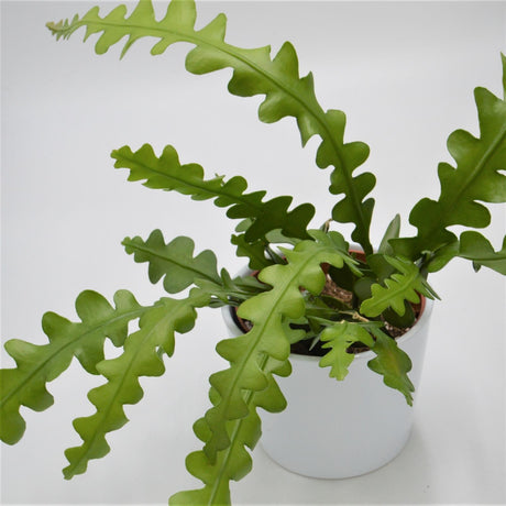 Epiphyllum anguliger: Diese Pflanze wird wegen ihrer Blattform auch als Sägeblattkaktus bezeichnet. Ihre grünen Triebe können bis zu einem Meter lang werden, deswegen eignet sie sich auch perfekt als Ampelpflanze. Von Mai bis August bildet der Kaktus gelbe oder rosafarbene Blüten. Einen Blogartikel über Epiphyllum anguliger findest du hier.