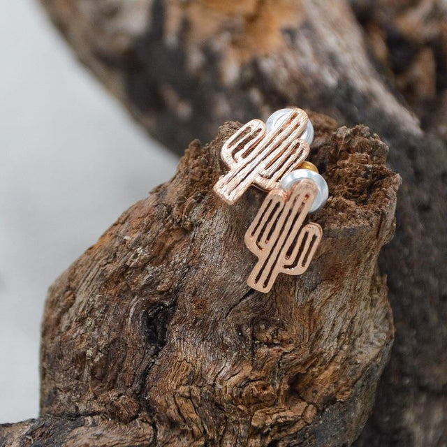 Texturierte, handgefertigte Ohrstecker mit Kaktus- Motiv.