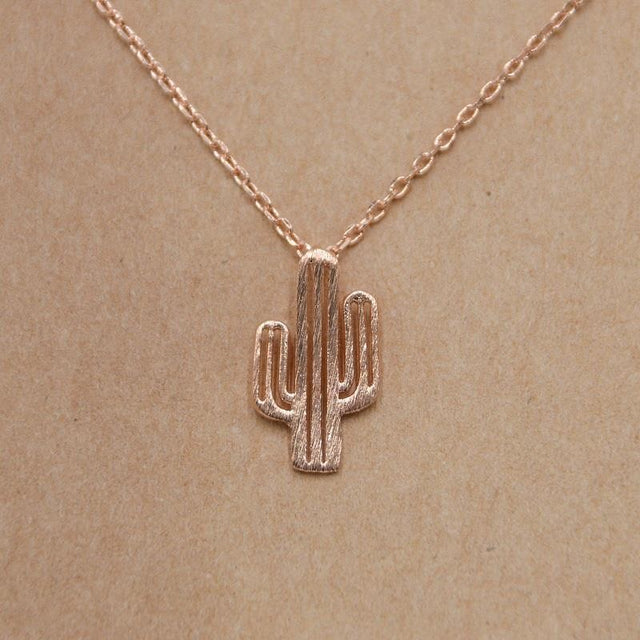 Texturierte, handgefertigte Kette mit Kaktus- Anhänger.