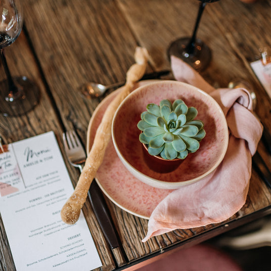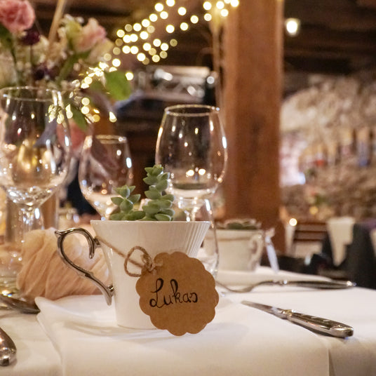 Pastellfarben, Blumendeko und jede Menge Herz – eine romantische Hochzeit lebt von liebevollen Details. Kleine Sukkulenten, kombiniert mit Rosen oder zarten Blüten, werden zu märchenhaften Gastgeschenken.