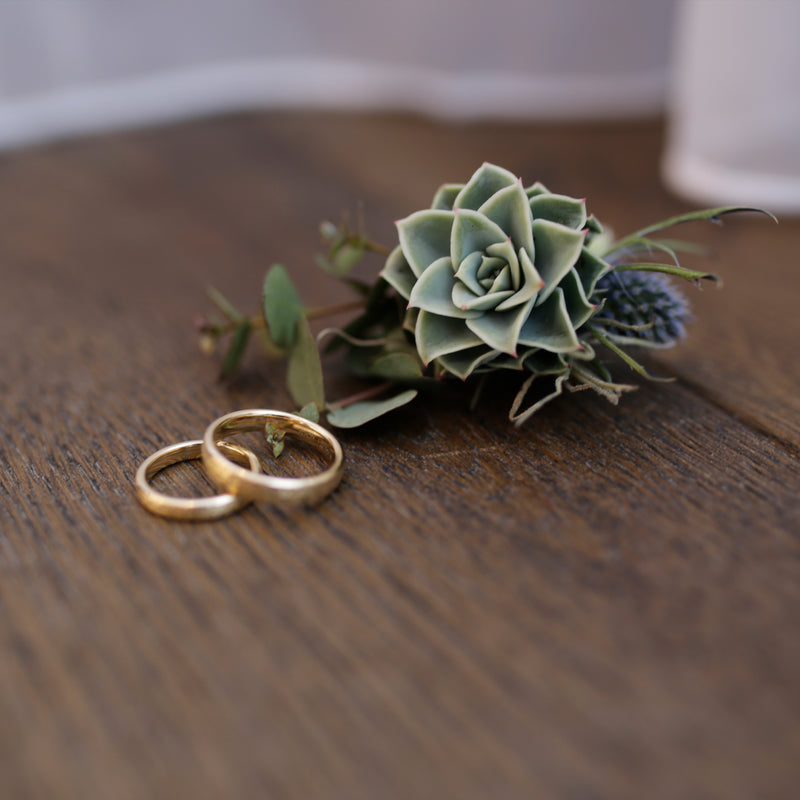 Eine Hochzeit in Weiß und Gold, festliche Musik und ein Hauch von Luxus – wer klassisch heiratet, setzt auf zeitlose Eleganz. Gastgeschenke wie kleine Echeverien in edlen Gefäßen unterstreichen diesen Stil.