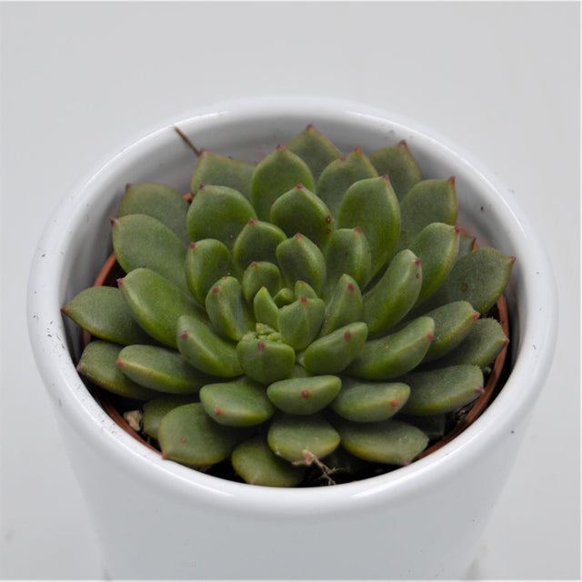 Sukkulenten speichern Wasser in ihren Blättern und vertragen deshalb Trockenheit gut. Stelle sie an einen hellen, sonnigen Platz und gieße nur, wenn die Erde vollständig abgetrocknet ist. Staunässe unbedingt vermeiden!