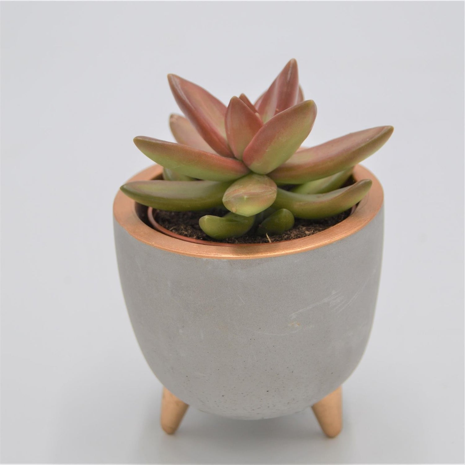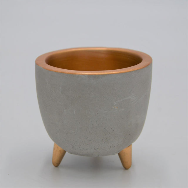 Beton Übertopf EMMA mit Füßen und Gold Akzenten für 6cm Sukkulenten